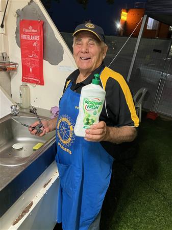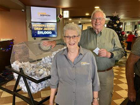 Pictured is Dot Charlton, President of Parkes Services Club, with Rotarian Ken Engsmyr in the background, drawing out the raffle winners.